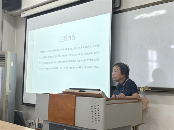 王凯戎律师作为资深医疗法律专家,曾任北京市卫健委信息中心研究员、研究部主任,北京市律理律师事务所执业律师,兼任北京市精神卫生和心理健康专家委员会等多个专业机构委员。此次培训中,王律师结合多年医疗法律实务工作经历,重点对《中华人民共和国民法典》中的个人信息保护等核心条款进行了逐条详细解读,强调患者隐私内容包括个人信息、病历资料、身体隐私等均受法律保护,任何泄露或不当使用均可能构成侵权。同时通过生动的实际案例进行讲解,紧贴医疗工作中的热点难点,举一反三,以例释法,深入浅出地阐释了医务人员执业过程中的权利义务边界,以及违法违规行为可能面临的法律责任,帮助大家全面深刻把握民法典立法精神和条文含义。最后还前瞻性地探讨了健康医疗大数据建设及应用发展中的法律风险防控,从临床数据、健康数据、生物数据等方面有针对性的做出讲解,为医院信息化建设提供了专业法律指引。