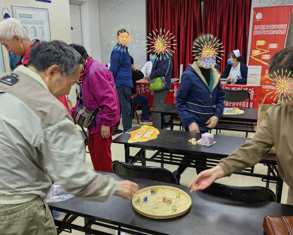 此次活动采用线上线下两种方式开展,系列活动以“一封家书”签到拉开序幕,手指点点就有一封封以中药为内容的简短家书,重温重阳经典诗词,宣扬敬老爱老的中华美德。通过“久久动起来”环节大家玩儿起了儿时的游戏,如抖空竹、翻花绳、踢毽子、打弹珠等传统运动,现场欢声笑语仿佛回到了久违的童年时代。