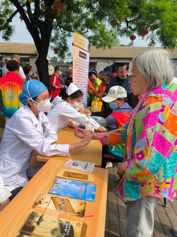 随着首都老龄化社会形势的不断发展,老年人多样性、多元化的健康养老服务需求日益增加。依据《北京市人民政府办公厅转发市卫生计生委等部门<关于推进医疗卫生与养老服务相结合的实施意见>的通知》(京政办发〔2016〕54号)、市民政局等部门《关于开展养老机构服务质量建设专项行动全面提升养老行业服务质量水平的实施意见》(京民福发〔2017〕129号)等相关文件要求,为持续推进医养结合工作,保障辖区居民健康权益,努力推广居家养老服务模式和区域养老服务资源,实现智慧养老走入家庭、文化养老融入生活、让老年人真正实现“老有所养、老有所乐”,我院于2024年4月26日,由医务科带队,派出针灸科,内科,骨伤科及护理骨干医务人员,来到陟山门街,积极参与什刹海街道组织的“2024 年什刹海街道养老文化市集暨西城区公益演出进社区”活动。
